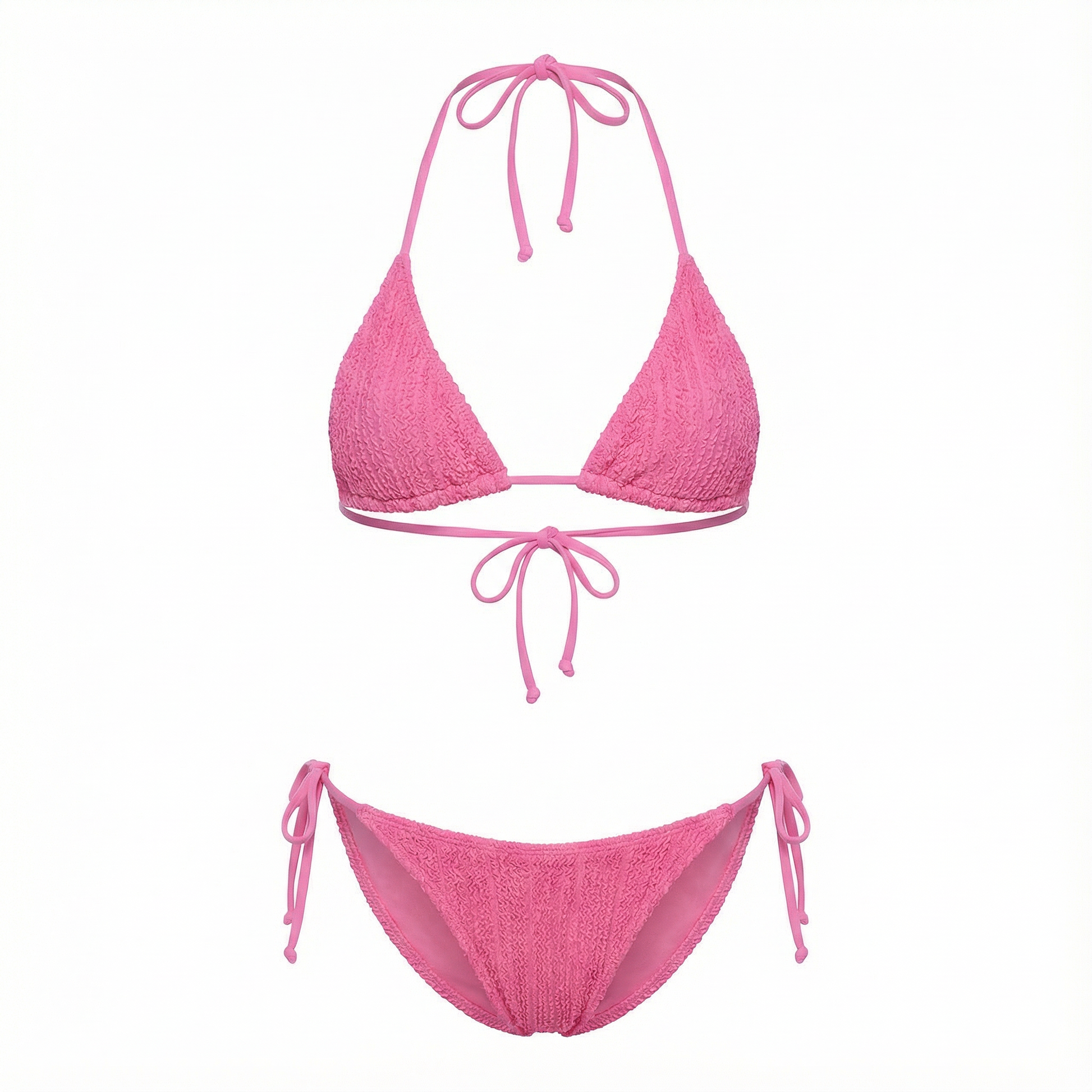The Ari Bottoms are the perfect match to the Benji Triangle Bikini Top, designed with a skimpier, minimal-coverage fit and adjustable tie sides for a customizable feel. Crafted from our adored weave fabric and finished in a bright pink hue for spring, Ari balances confidence and ease with a playful edge. Polished yet playful, these bottoms are made for beach and boat days alike.