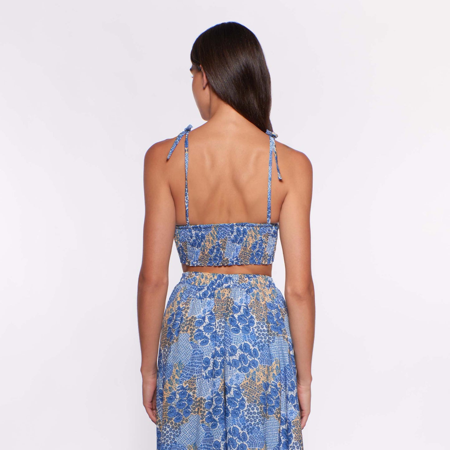 Pull on style, Self tie shoulder straps, Beaded detailing, Smocked back